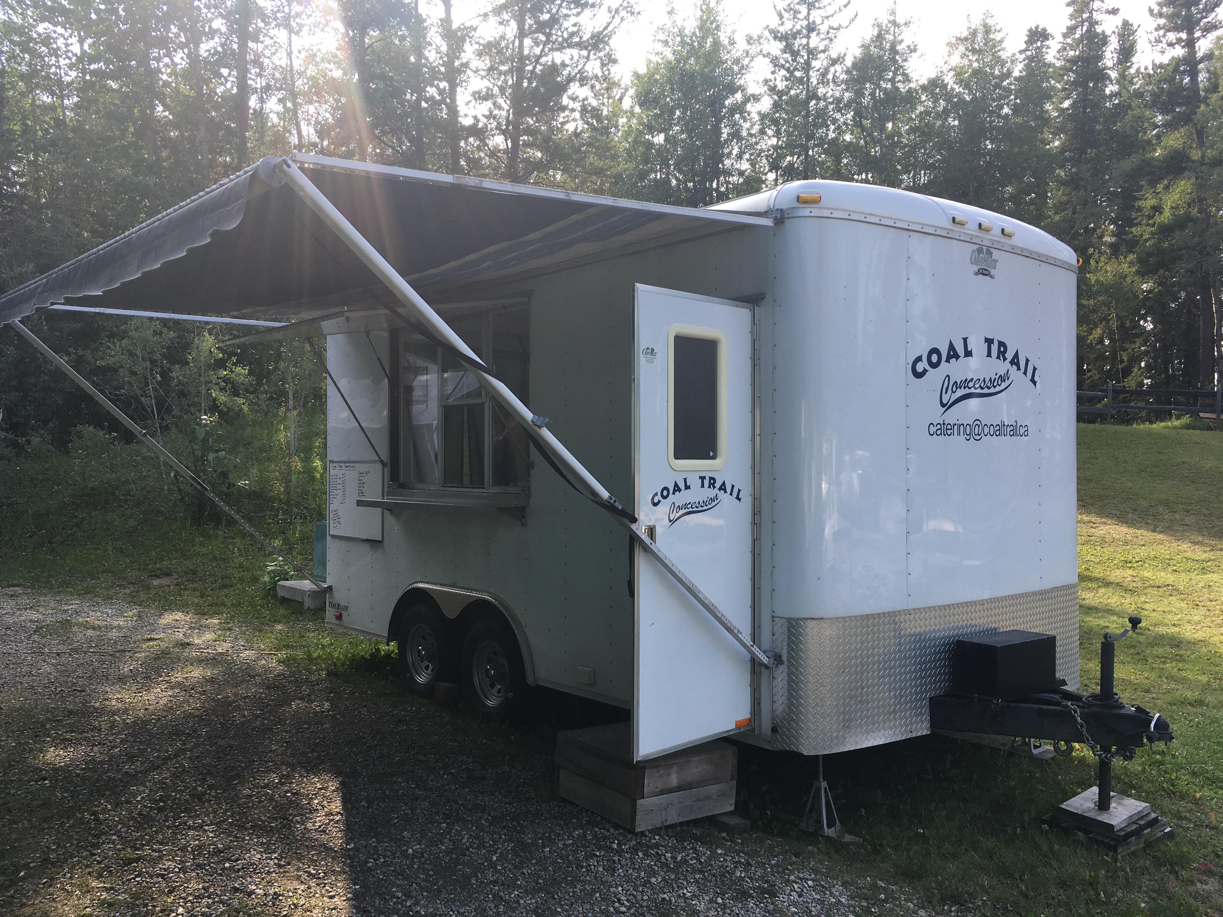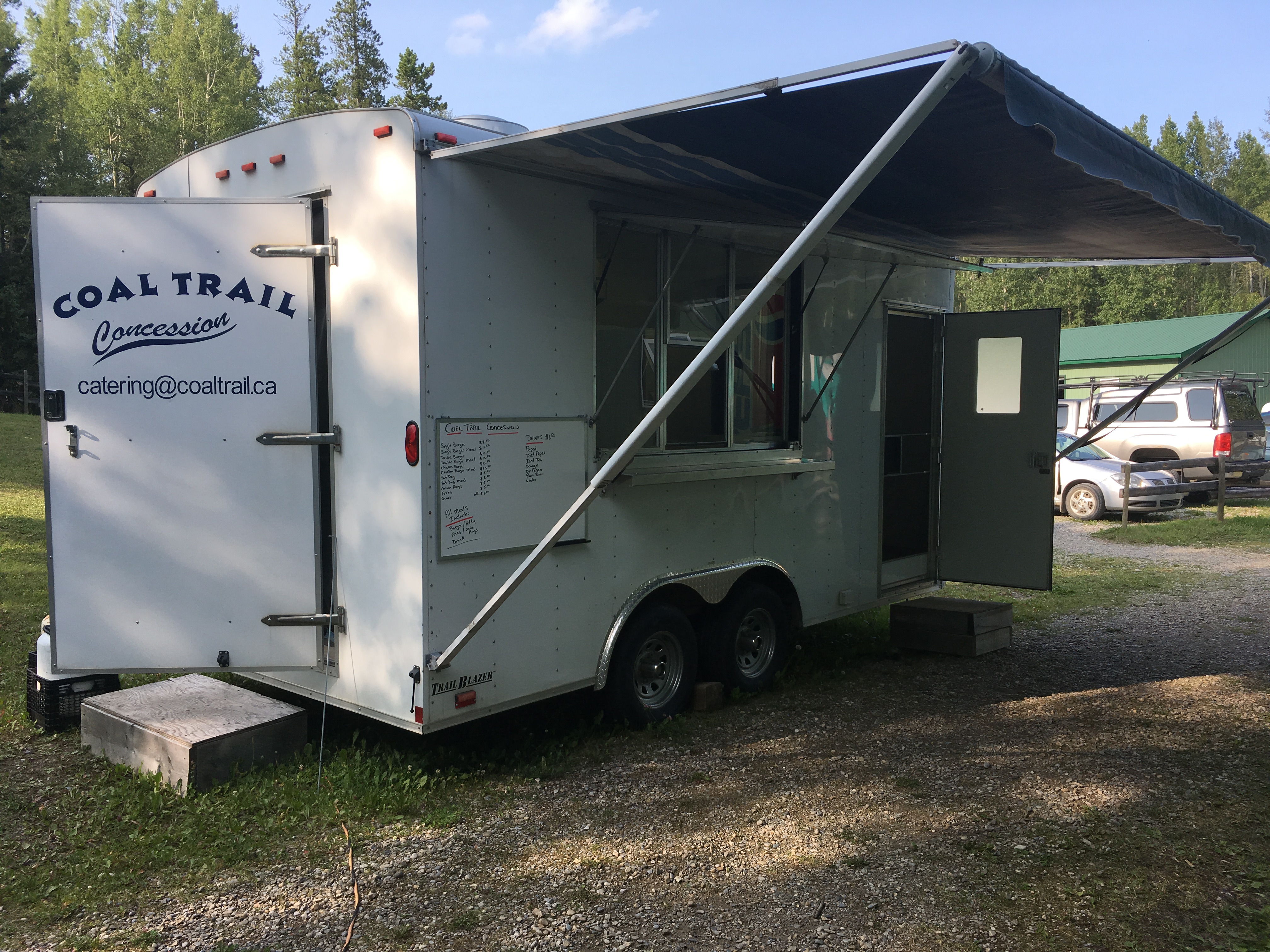 Fully equipped unit with grill, deep fryer, freezer and cooler. Ready to serve you something delicious out the covered service window